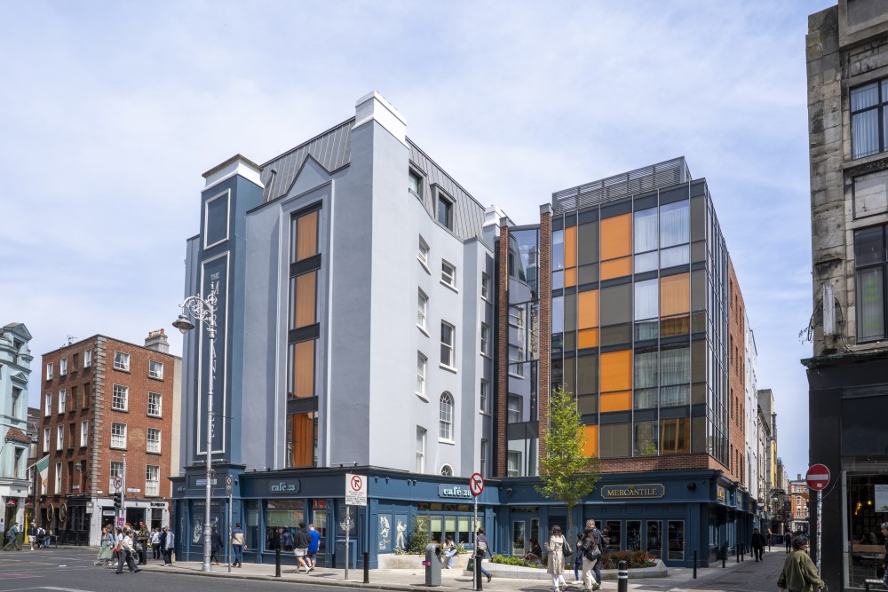 The Mercantile Hotel is a part protected building and part normal building. Dame house is a protected structure and all work had to be carried out in accordance with good conservation practices. Mercantile house is unprotected, therefore more modern techniques could be applied to the finished product.